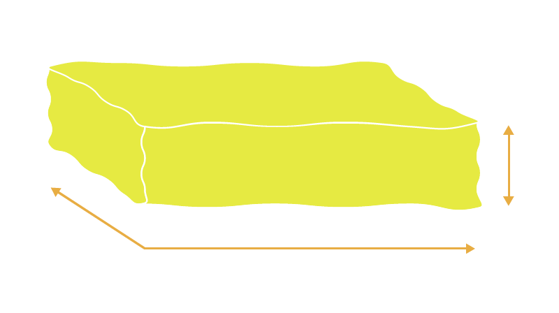 Una vez que se completa un bloque de esponja, se corta en dimensiones y formas específicas en el sitio. Desde un rectángulo estándar hasta un polígono característico, nuestra instalación es capaz de troquelar prácticamente cualquier forma de esponja personalizada. Los bloques se cortan horizontalmente para determinar la altura y verticalmente para la longitud y el ancho.